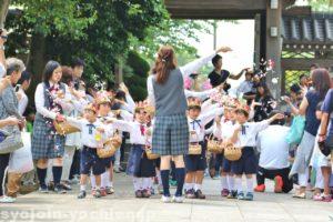 本園の行事は、それぞれに目的とねらいを定め、行事前にはまず各クラスにて行事の由来や意義を分かり易く伝えます。行事によっては本番の前に集会を行い、なるべく子どもたちが理解出来るような取り組みをしています。盆踊りでは、本来のご先祖供養を意義として、ただ楽しく踊るだけではなく、日々の生活が出来る幸せはご先祖様あってのことと事前にお話をしてから楽しく踊ります。